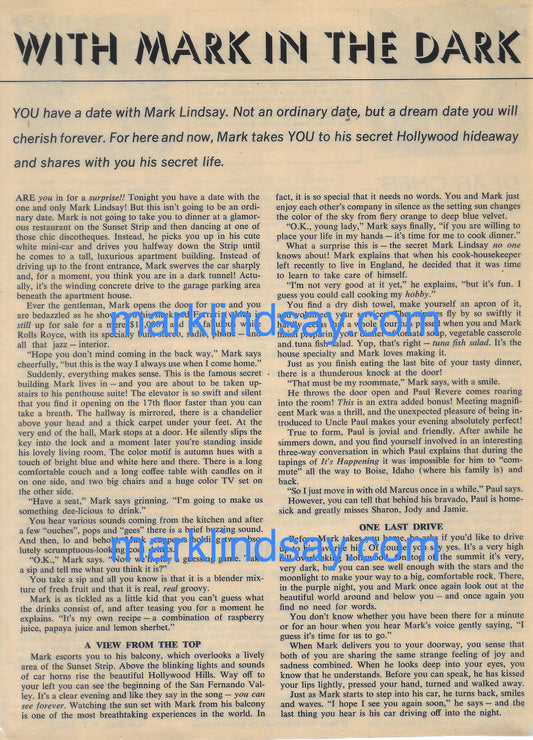 "Mark In The Dark" Vintage Article + Pin-up - 16 - Personally Autographed to YOU by Mark Lindsay