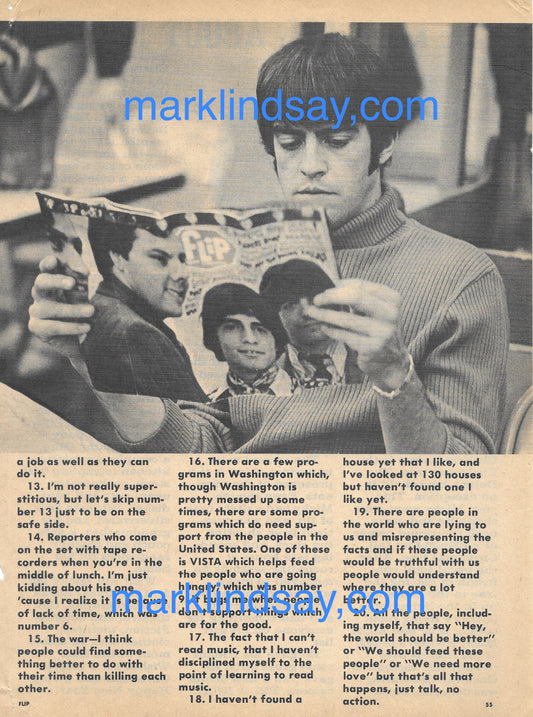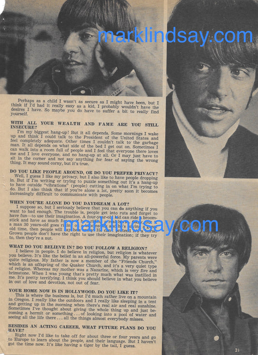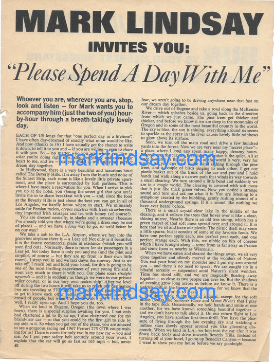 "Spend A Day With Me" Vintage Article - 16 - Personally Autographed to YOU by Mark Lindsay