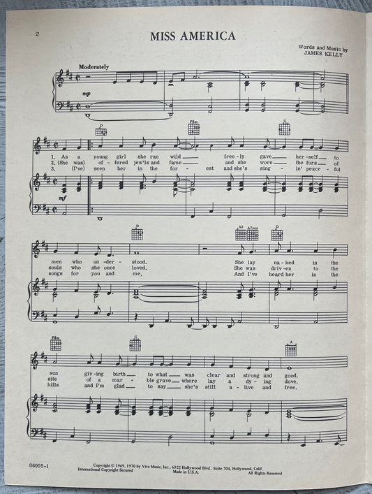 Vintage 1970 Sheet Music Miss America - Personally Autographed To You By Mark Lindsay
