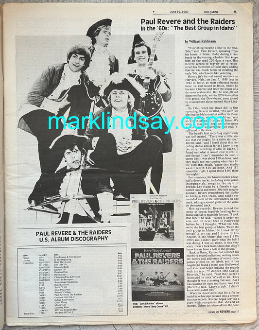 1987 Goldmine Magazine / 3 Page Raiders Cover Article- Personally Autographed to YOU by Mark