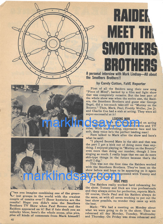 Pirate Raiders on Smothers Brothers Vintage Article + Pin-Up (FAVE) Personally Autographed to YOU by Mark Lindsay