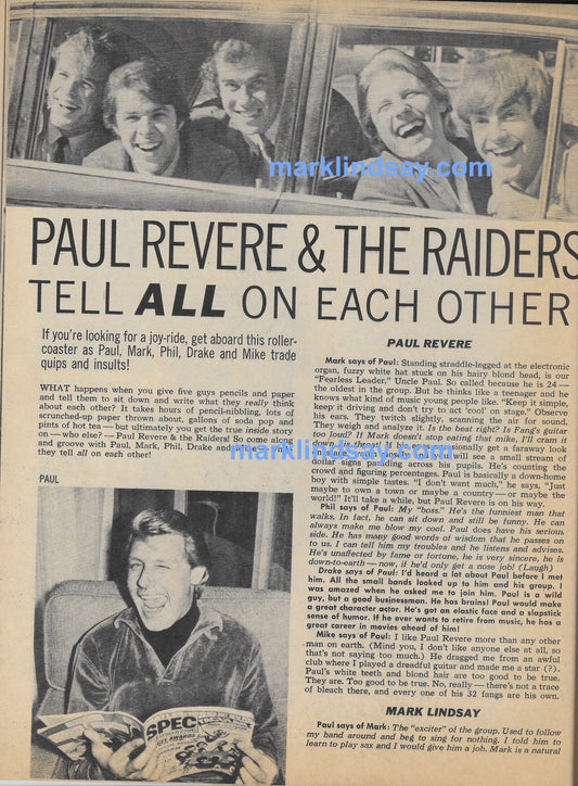 12/67 Vintage DIG Magazine Mark Lindsay and Raiders Centerfolds - Personally Autographed to YOU by Mark