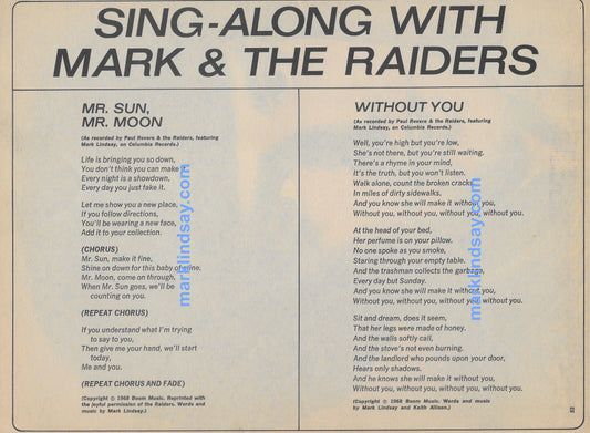 Mark Lindsay Vintage Pin-Up Circa 1968 + Lyrics - 16 Magazine - Personally Autographed to YOU by Mark