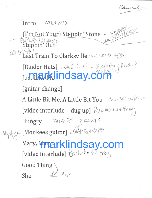 50 Summers of Love w/Micky Dolenz Production/Rehearsal Notes 2017 - Personally Autographed to YOU by Mark Lindsay
