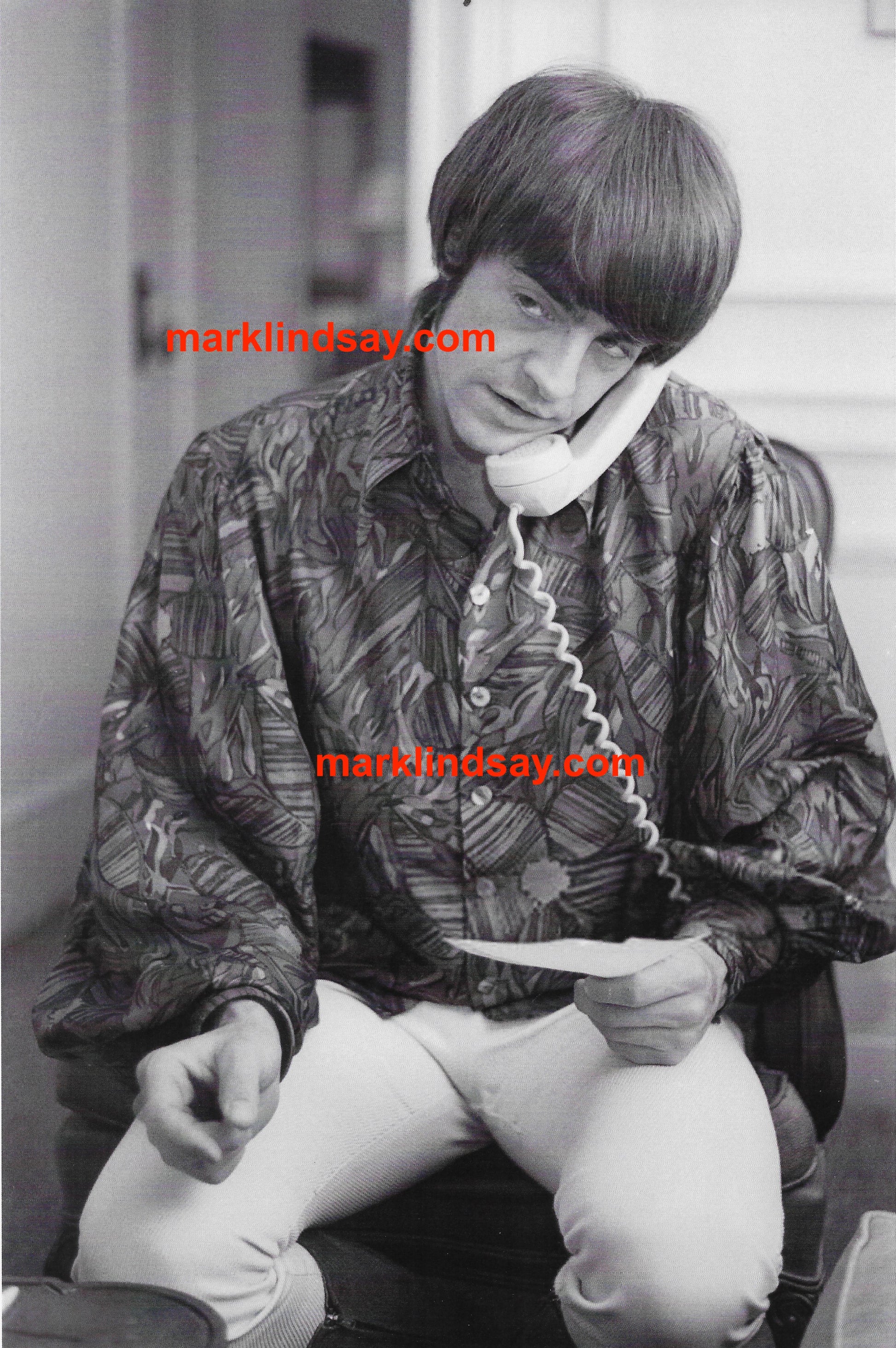 This is a glossy-finish 8"x10" photo of Mark Lindsay taken in 1969, picturing him on a telephone of the era.