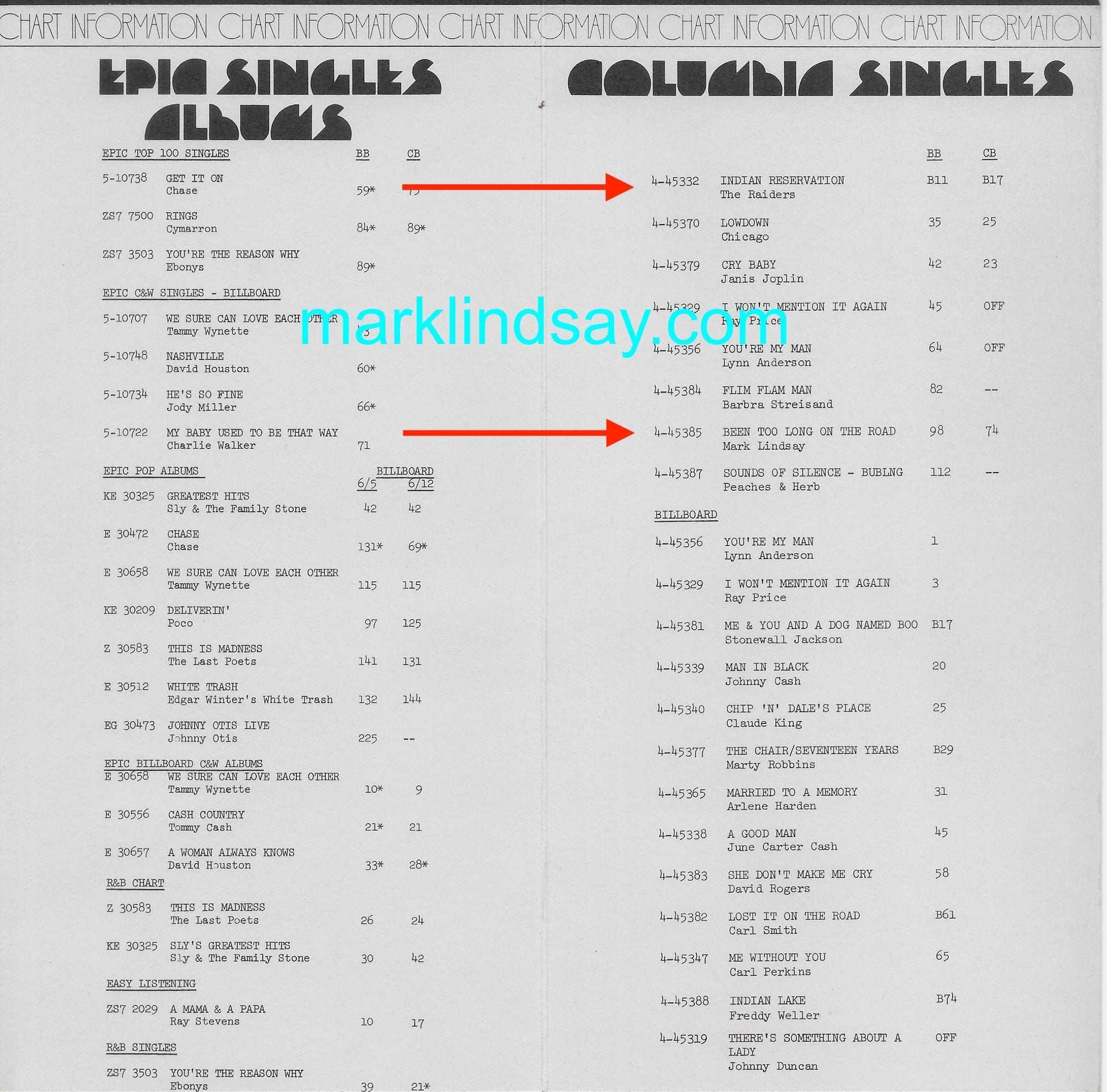 - Mark Lindsay - Been Too Long on The Road, at #98/74