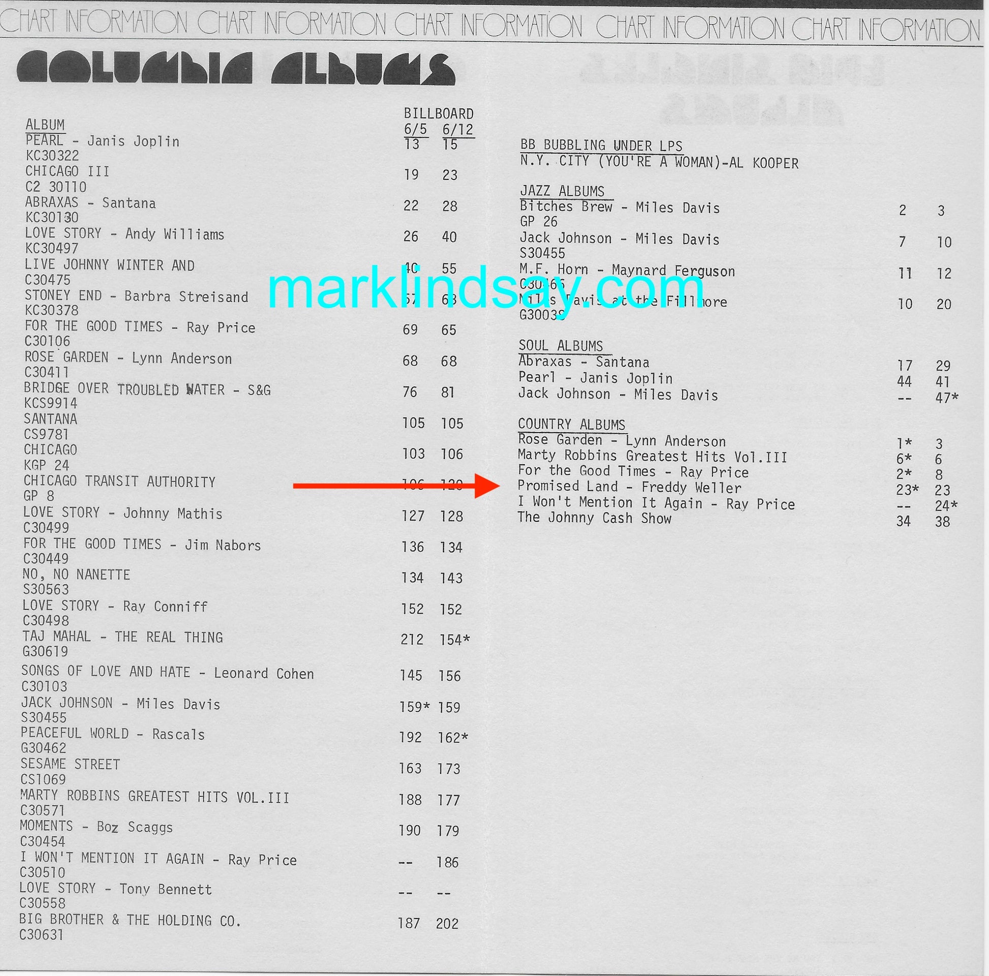 - Freddy Weller - Promised Land album, at #23 on both Country Album charts