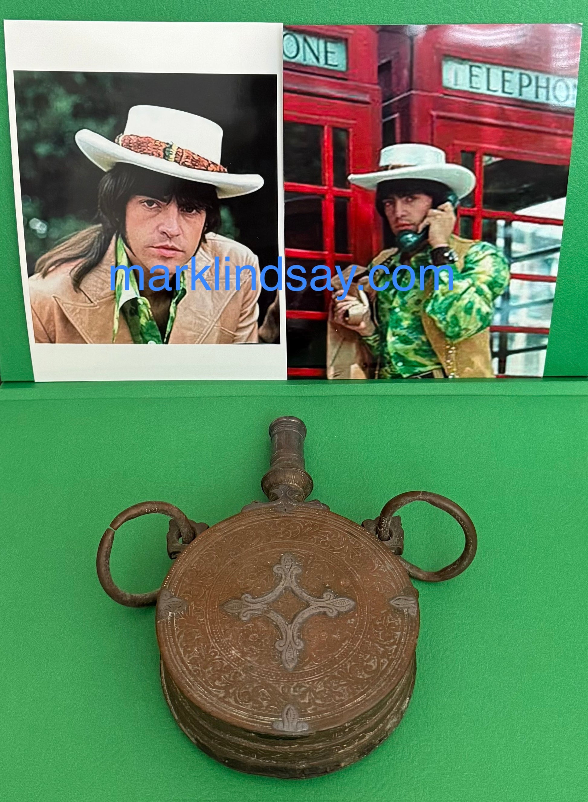 19th C North African Black Gunpowder Flask from '69 UK Trip - w/2 London Photos Personally Autographed to YOU by Mark Lindsay