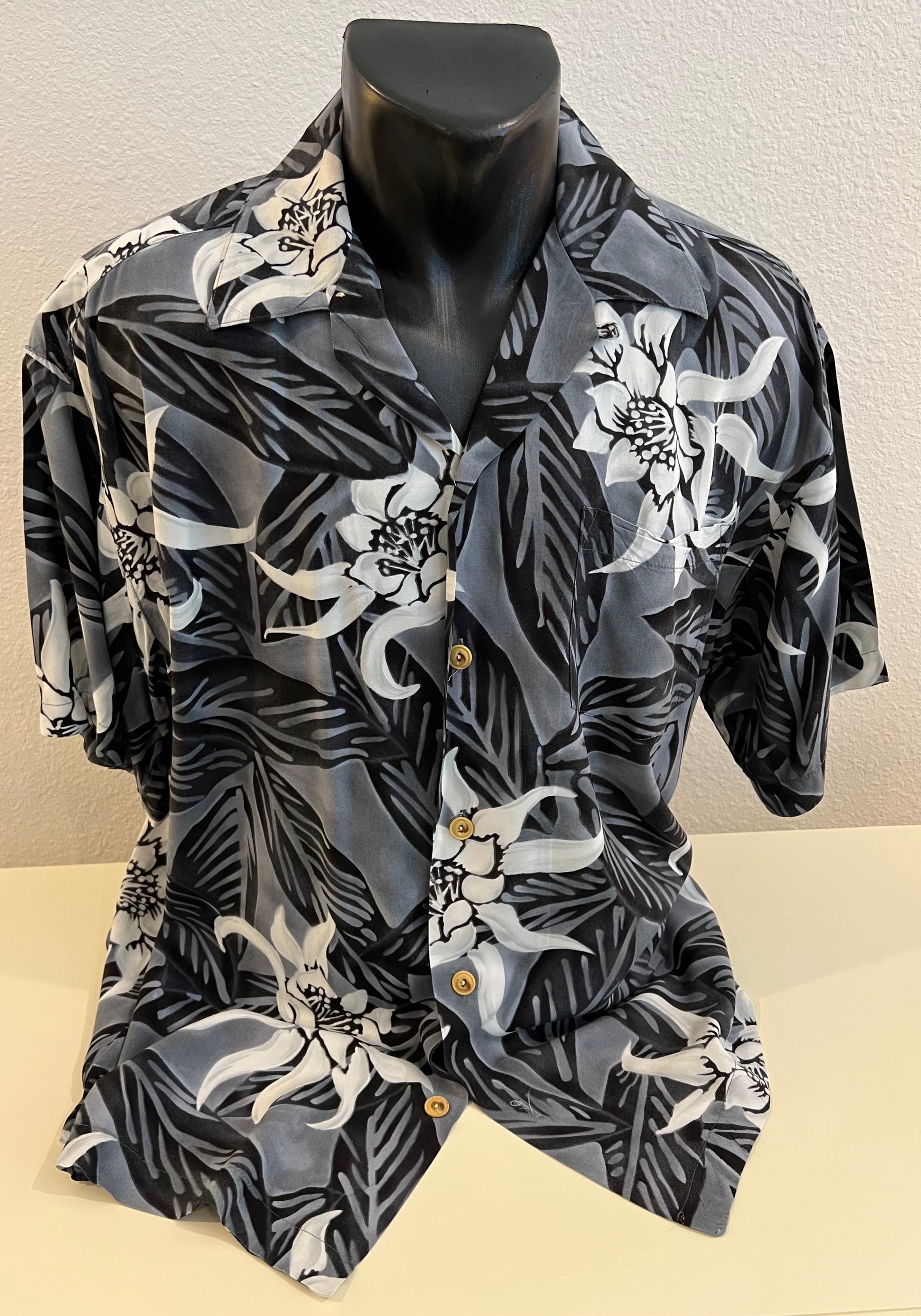 Stage-Worn Hawaiian Shirt (Gray/White Floral), Cert Authenticity and Photos - Personally Autographed to YOU by Mark Lindsay