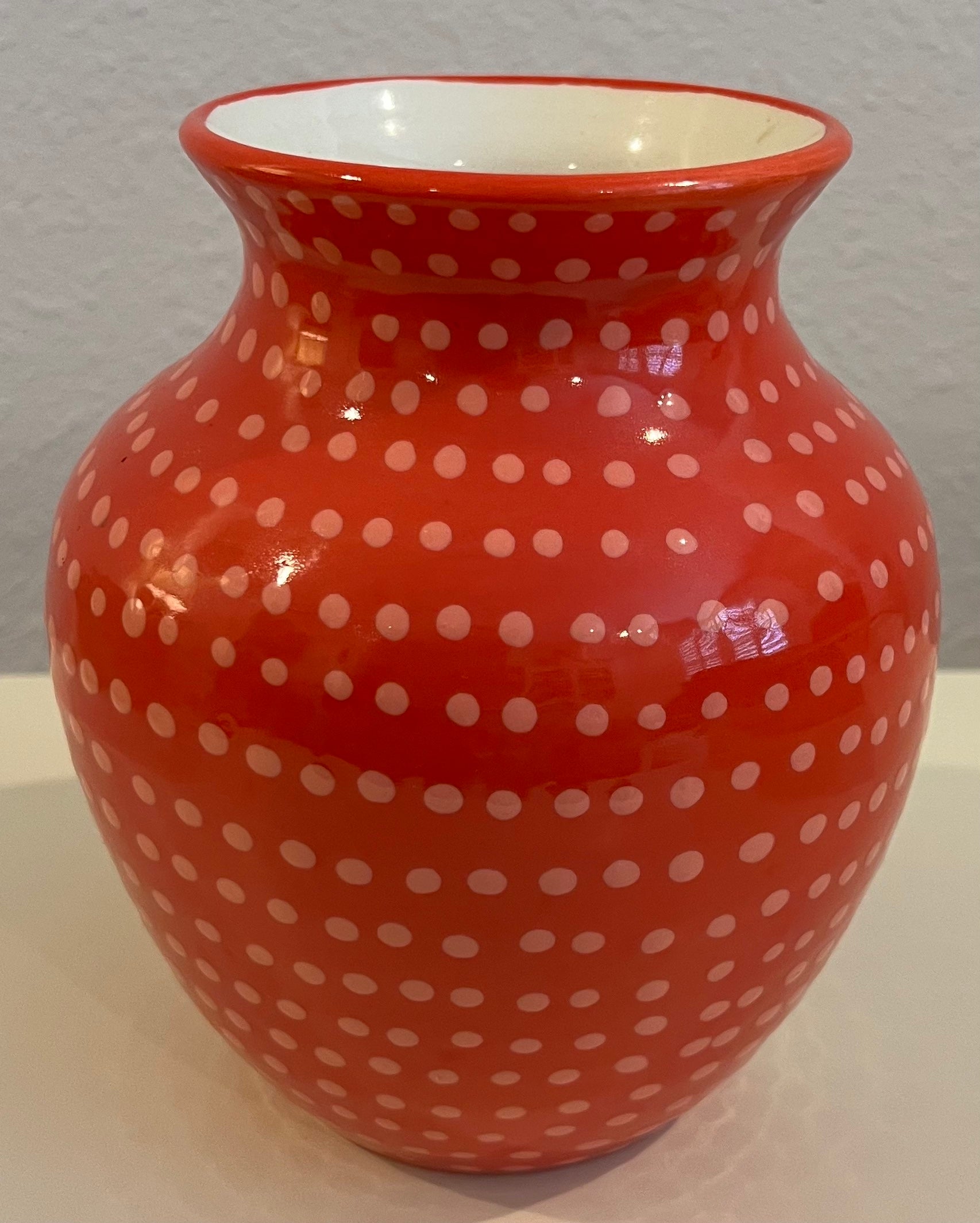 From our shop in Maine: This is a handpainted ceramic vase, made in Maine by one of our favorite artisans, Lacey. Measures 6" tall and 6-1/2" in diameter.
