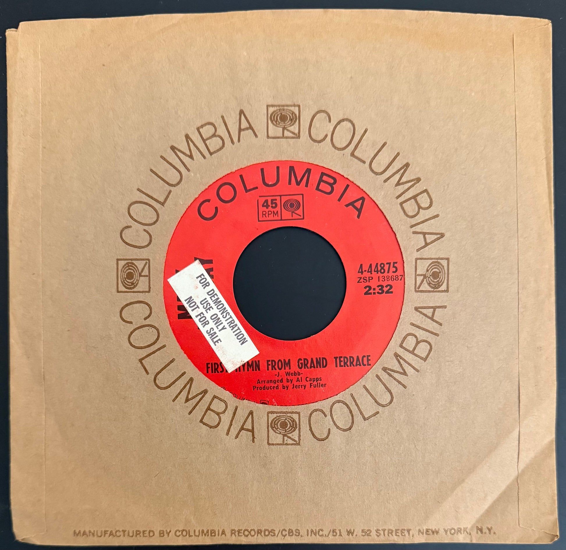 From DEEP in the memorabilia vault - VERY LIMITED QUANTITIES - This is one of Mark's original 1969 DEMONSTRATION vinyl 45's of his very first solo single, First Hymn From Grand Terrace/Old Man At The Fair. The vinyl is mint and unplayed. This is from the original shipment of demonstration copies sent to Mark in 1969, and he's had it ever since.