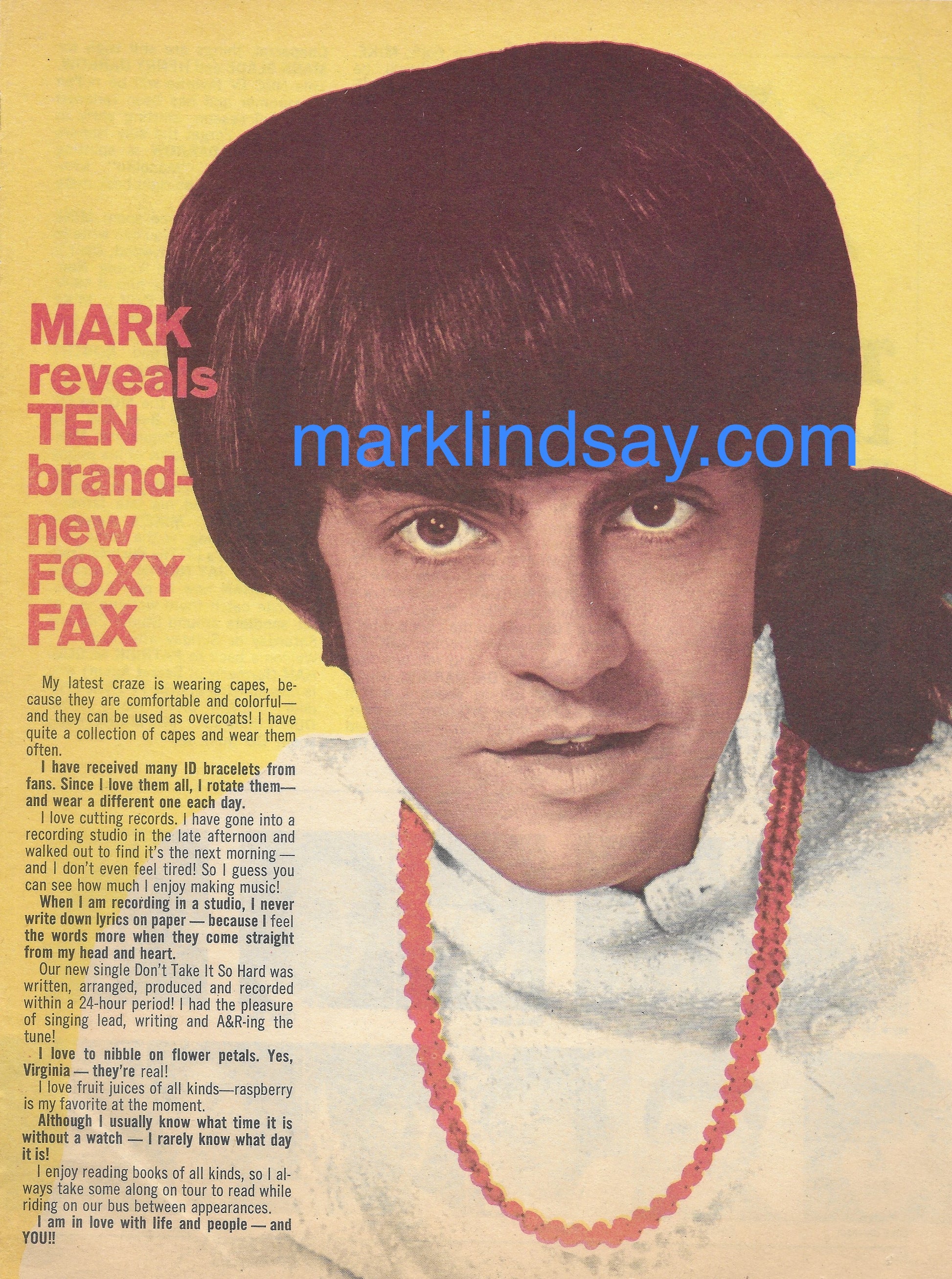 "FoxyFax" Vintage Article - 16 Magazine - Personally Autographed to YOU by Mark Lindsay