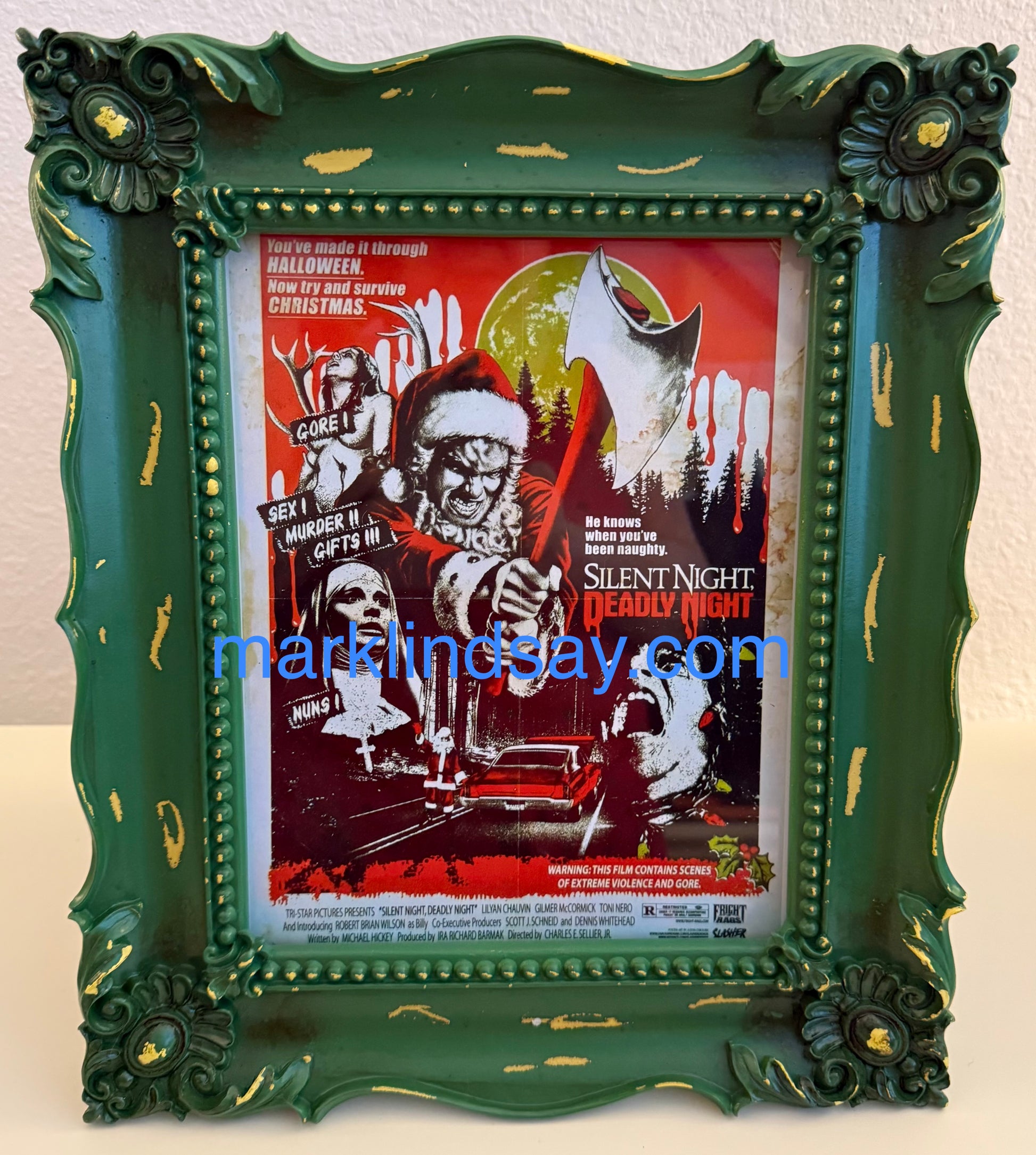 ONE ONLY - From Mark Lindsay's collection, this is a framed 8"x10" photo of a movie poster for the 1984 Christmas cult-classic slasher movie Silent Night, Deadly Night. Mark's writing partner Perry Botkin did the score, and Mark was the uncredited mixing engineer for the music.