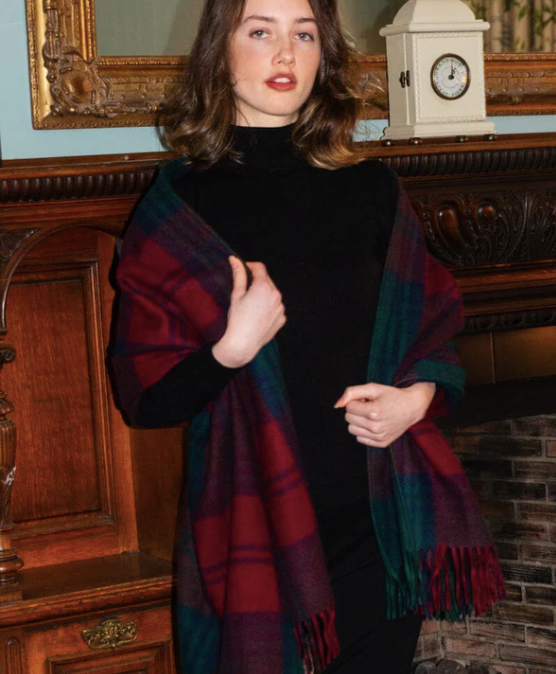 From the Great Scot website: Crafted with meticulous care by our master weavers here in Scotland, this luxurious scarf is designed to be wrapped as a stole, draped as a cape, or worn as a voluminous scarf. Its delicate softness is luxurious to the senses and suitable for gentlemen too.