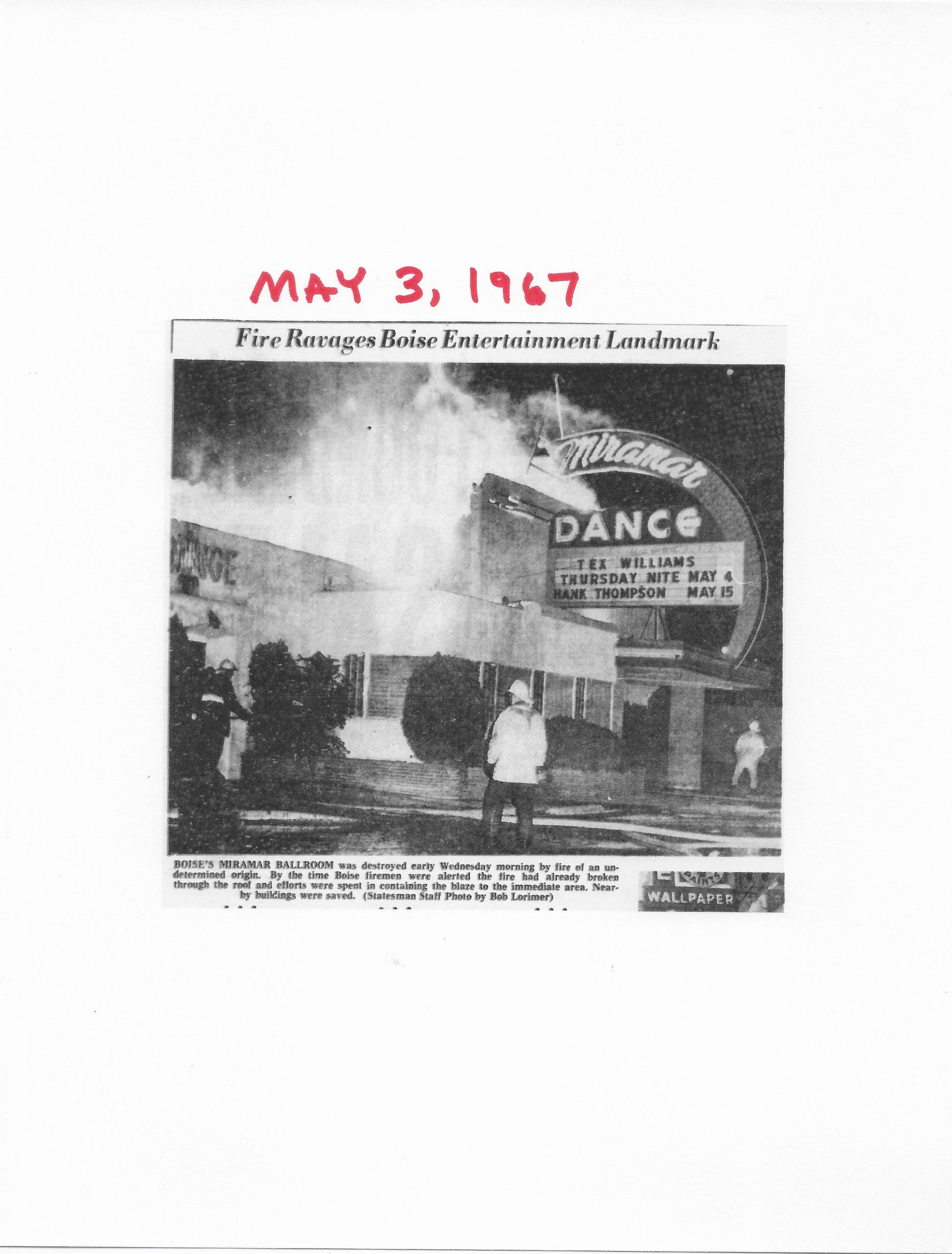 This is ORIGINAL stationery circa 1962 from one of Boise's legendary ballrooms, the Miramar. The Raiders played there often, and we've lightly affixed 2 reprints of notices for two shows they did there - November 21, 1962, and December 23, 1963. The Miramar was built in the 30s, but sadly, was destroyed in a fire in 1967.