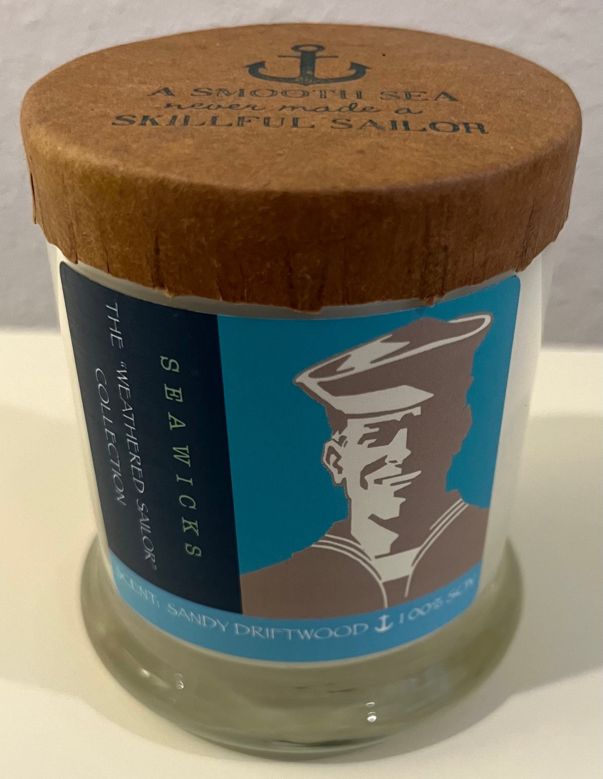 This is a Weathered Sailor's "Sandy Driftwood" long-burning soy candle in a glass container, hand-poured by a woman artisan on the coast of Maine. Measures 3" in diameter and 4" tall. Includes a postcard (5-1/2" x 8") of Passamaquoddy Bay and The Fundy Isles, with the back side PERSONALLY AUTOGRAPHED by Mark Lindsay to the name of your choice.