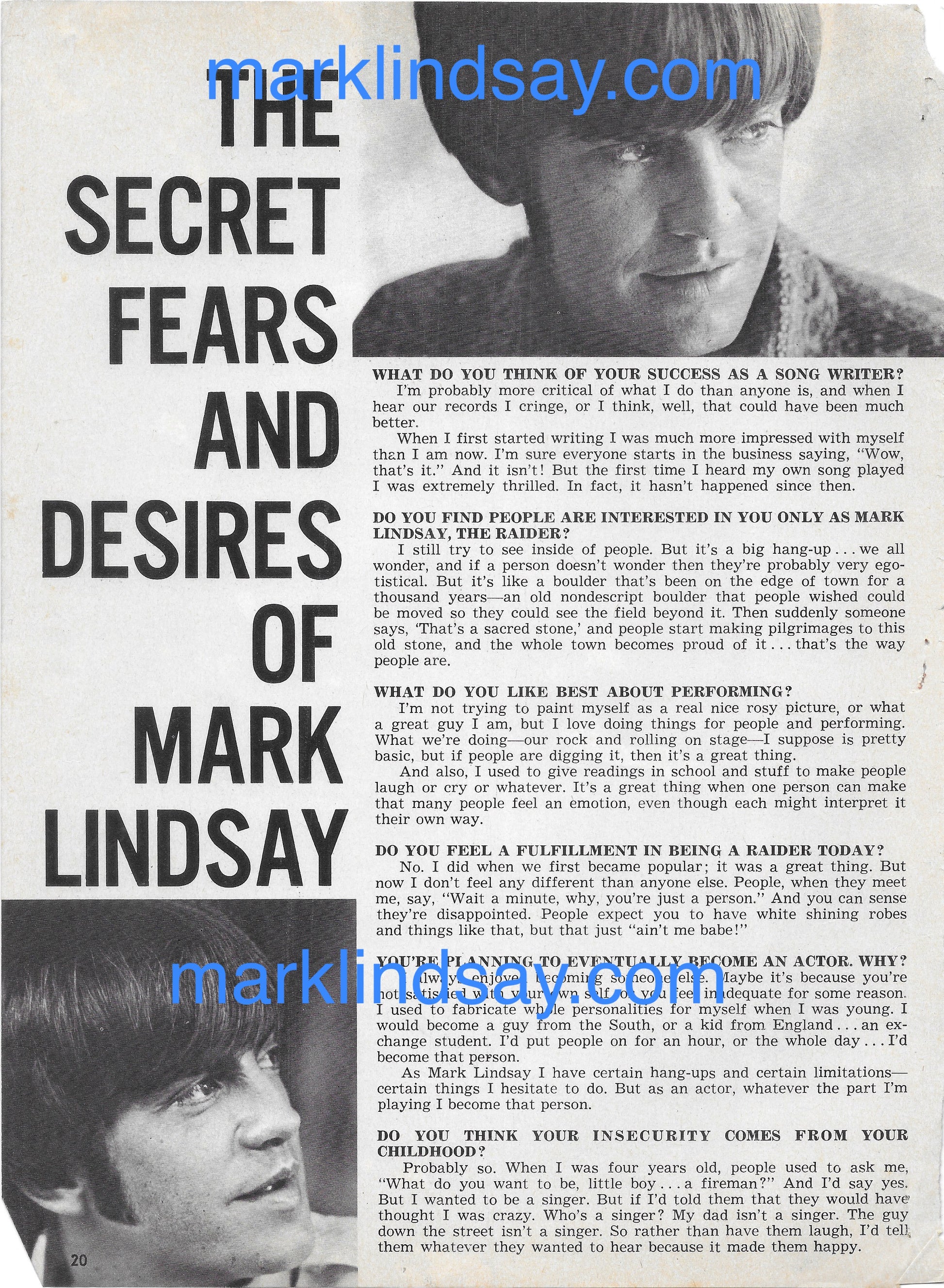 "Secret Fears/Desires" Vintage Article - Personally Autographed to YOU by Mark Lindsay