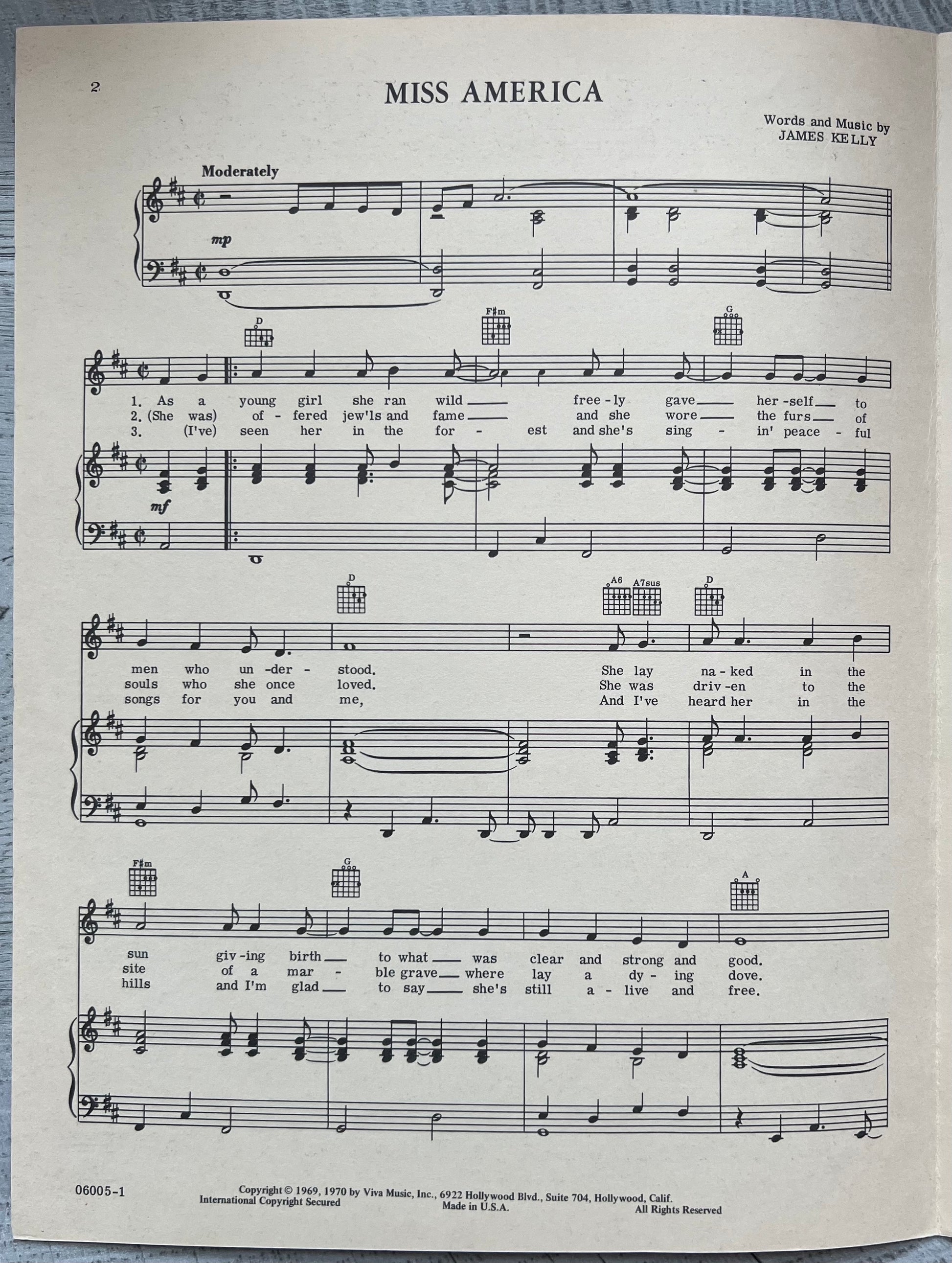 From Mark Lindsay's collection, this is a 1970 sheet music brochure for MISS AMERICA, written by James Kelly.