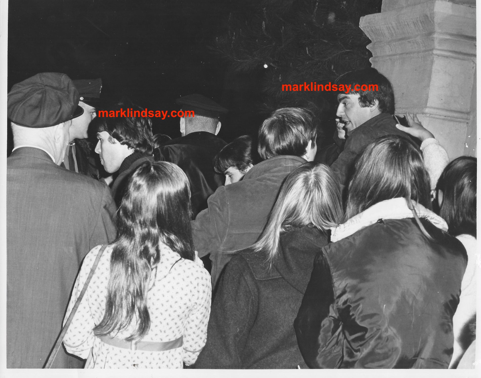 ONE ONLY - This is an ORIGINAL, vintage 1965 8"x10" photo of Mark Lindsay leaving a show in the area Cupertino, CA (Phil Volk to his far left), where a girl is trying to grab his ponytail. This has the photographer's stamp on the back (see photo below). Mark has had it in his collection since that date.
